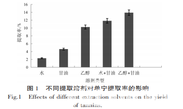 2.2 水和甘油混合溶劑的配比對單寧提取率的影響